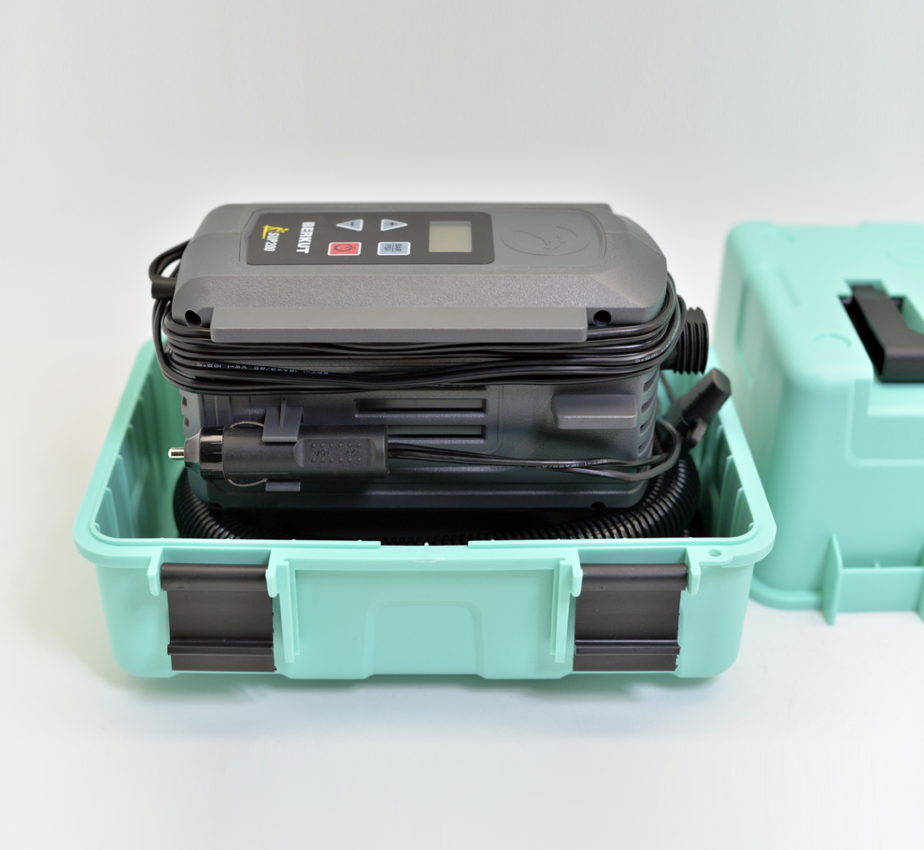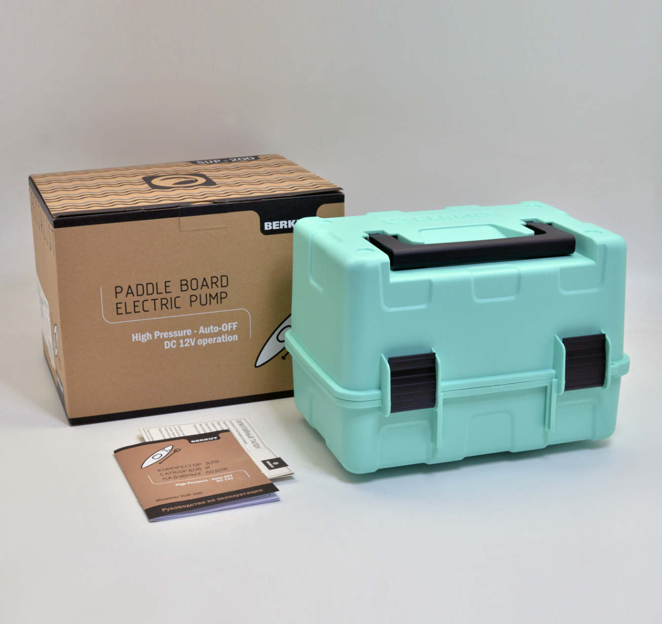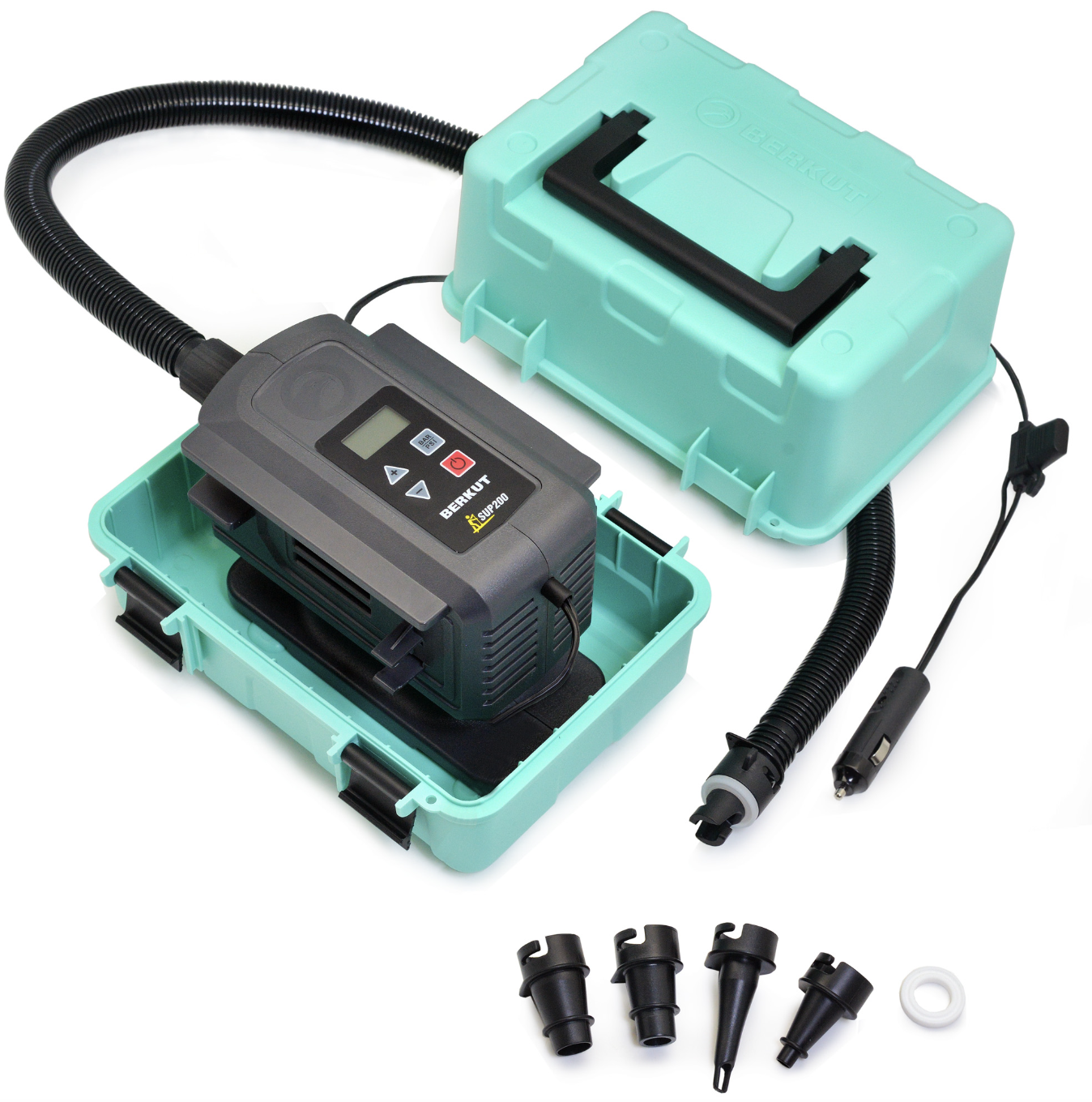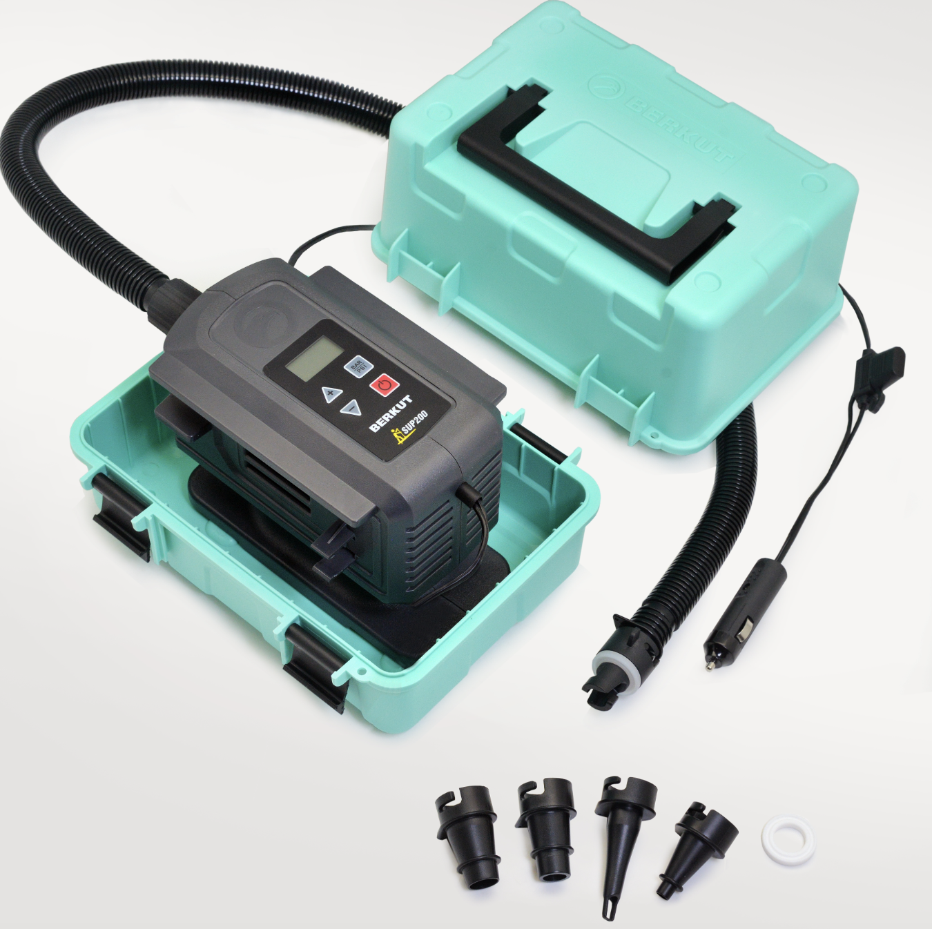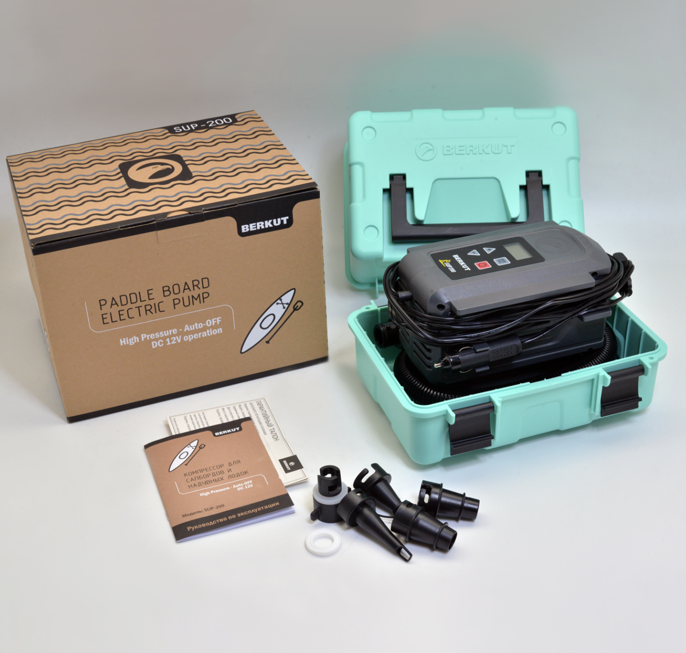 BERKUT SUP-200 - высокопроизводительный компрессор для сапбордов и надувных лодок. Компрессор предназначен для накачивания сапбордов, надувных лодок, каяков, байдарок, палаток, матрасов и т.п. Для этого в комплекте предусмотрены различные насадки-переходники. Рабочее напрядение компрессора: 12В (бортовая сеть автомобиля).