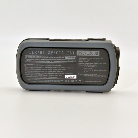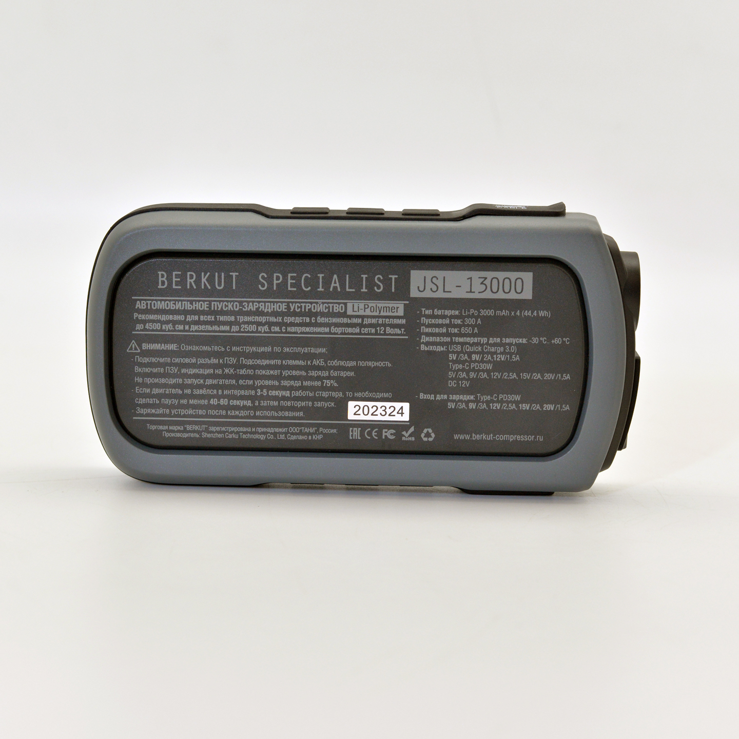 Это специальное пуско-зарядное устройство литий-полимерного типа предназначено для аварийного запуска двигателя транспортного средства в случае неисправной АКБ. Устройство подходит для любых типов транспортных средств с напряжением бортовой сети 12V, а также служит для подзарядки и работы широкого ряда мобильной техники и электроники от встроенных разъемов USB и Type-C. Пуско-зарядное устройство JSL-13000 рекомендовано для любых типов транспортных средств бензиновыми двигателями до 4500 см. куб. и дизельными до 2500 см. куб.