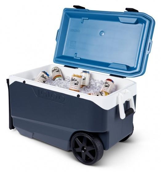 Изотермический пластиковый контейнер Igloo (Иглу) Maxcold 90 Roller оснащен крышкой с двойной изоляцией и ограничителем, поэтому надолго сохраняет в неизменной температуре бутылки с жидкостью или напитки. Боковые ручки агрегата прорезинены, они не выскальзывают из рук пользователей. Емкость выполнена в эргономичной форме, которая гарантирует ей удобство в эксплуатации и высокую вместительность.