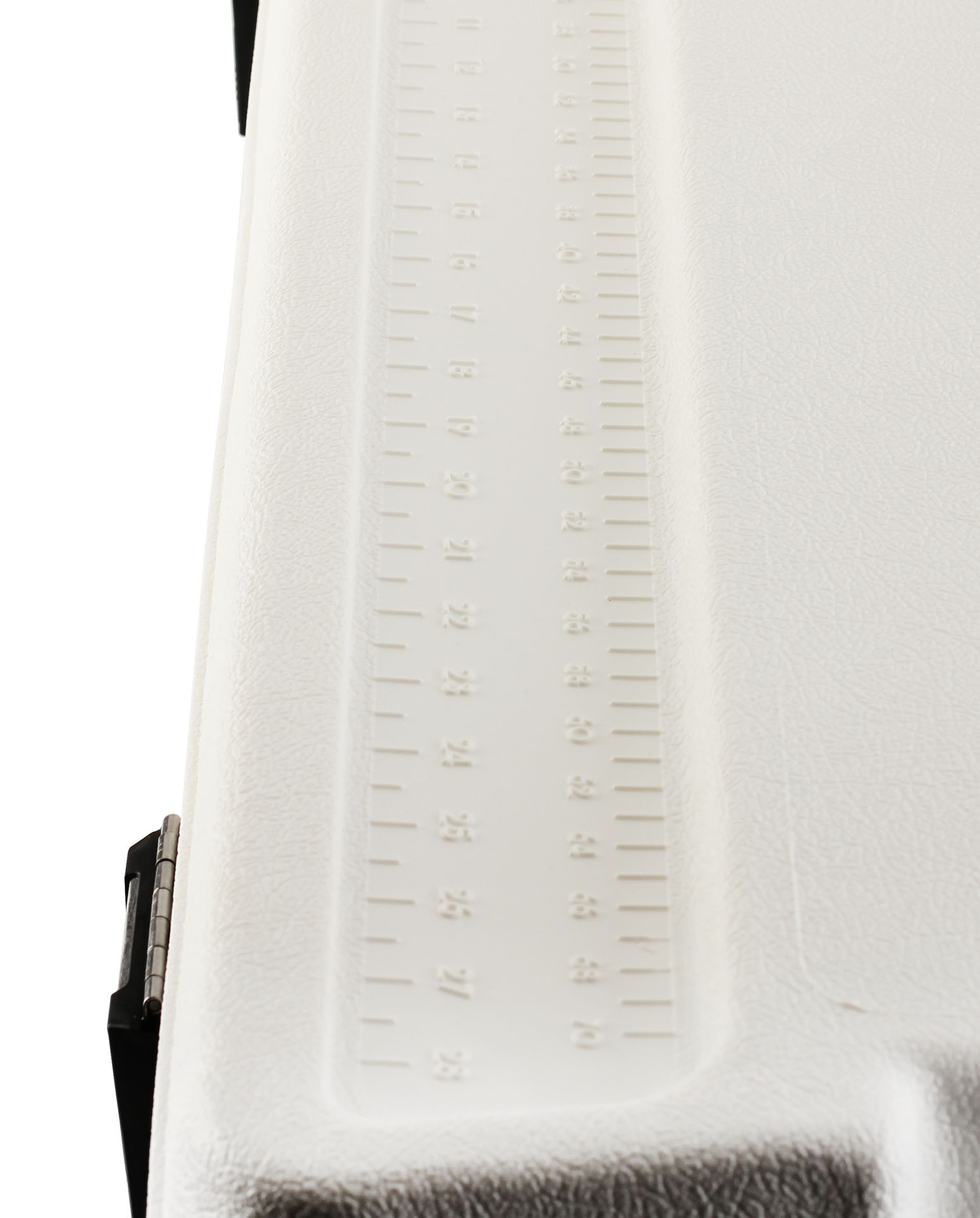 • «Fish-measuring ruler» — Отформованная в крышке мерная линейка для измерения размера рыбы. Линейка размечена в сантиметрах и дюймах.