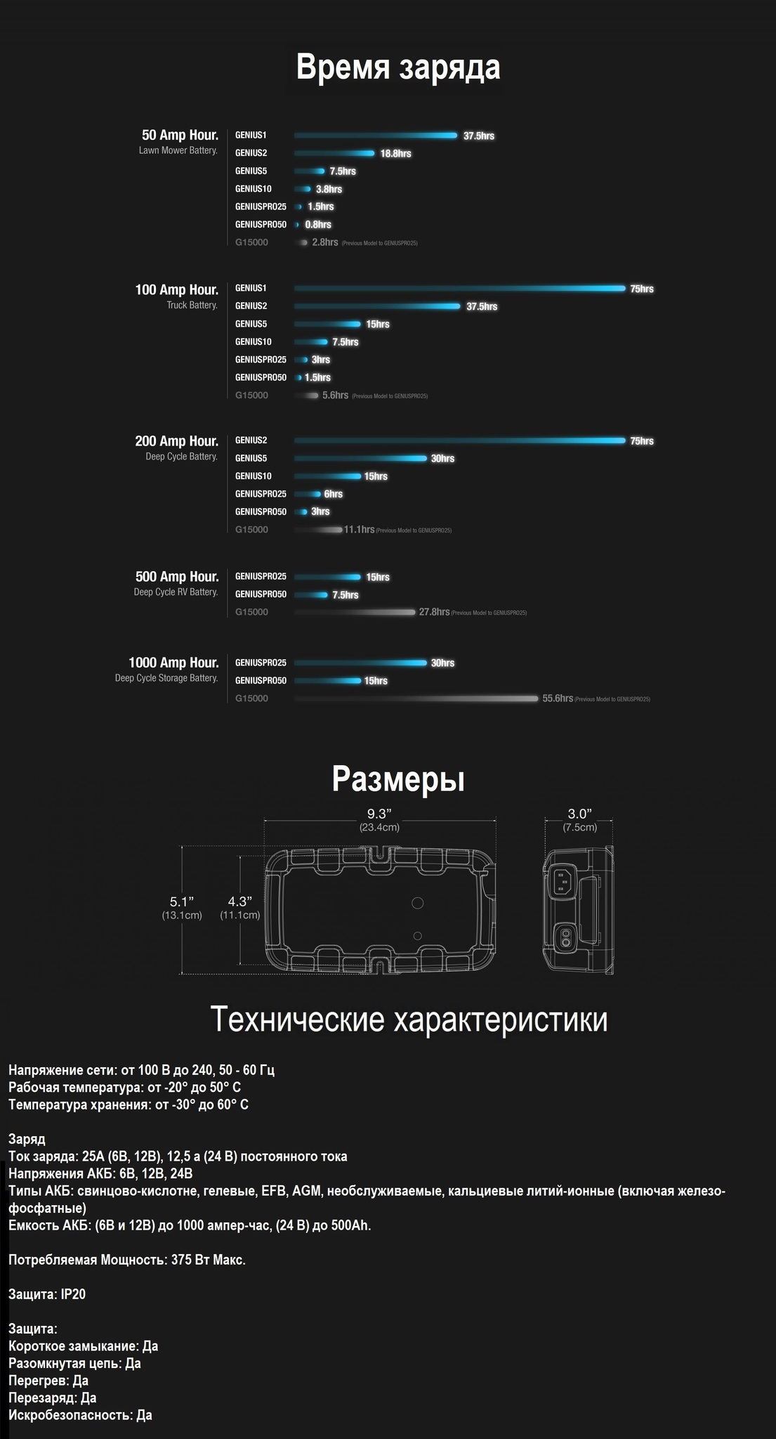 NOCO Genius PRO25 — Новое ультрабезопасное интеллектуальное зарядное устройство (6В, 12В и 24В) с силой тока 25 ампер.